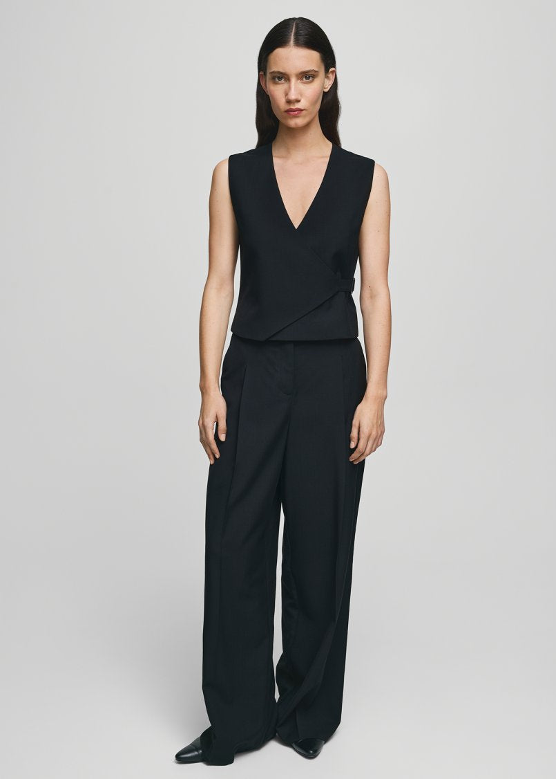 Machella is a classic suit pants, with a high waisted fit, front pleats and pockets. The pant legs has a straight cut. The model is 173cm and wears a size S.